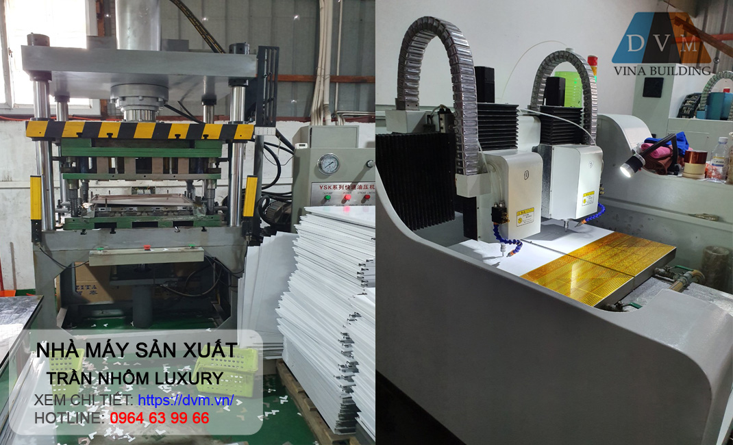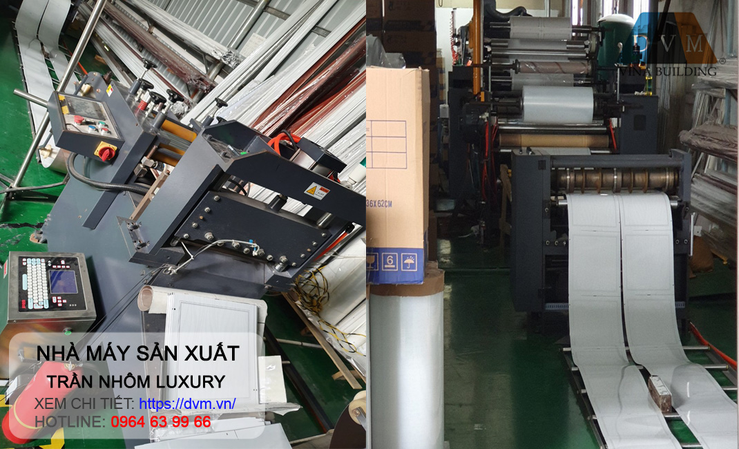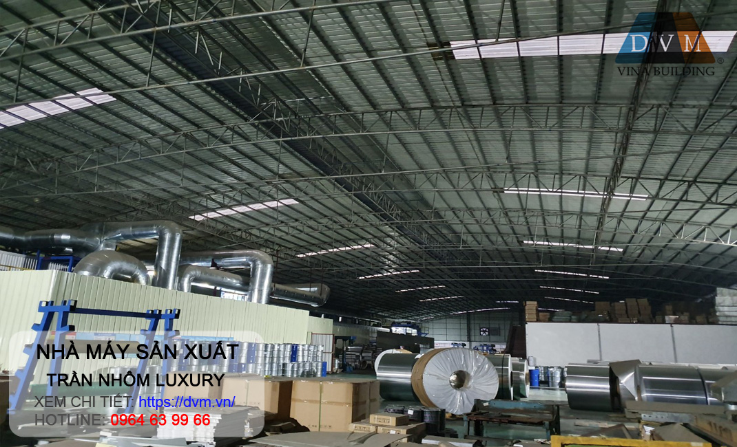 Nhà máy sản xuất tấm Trần nhôm LUXURY của Công ty DVM liên doanh, diện tích 5.000m2 tổng mức đầu tư gần 5 triệu USD. Công suất 3.000m2/ngày. Đảm báo các tiêu chí về tính cách âm, cách nhiệt, chống cháy và an toàn với sức khỏe của con người, thân thiện đối với môi trường